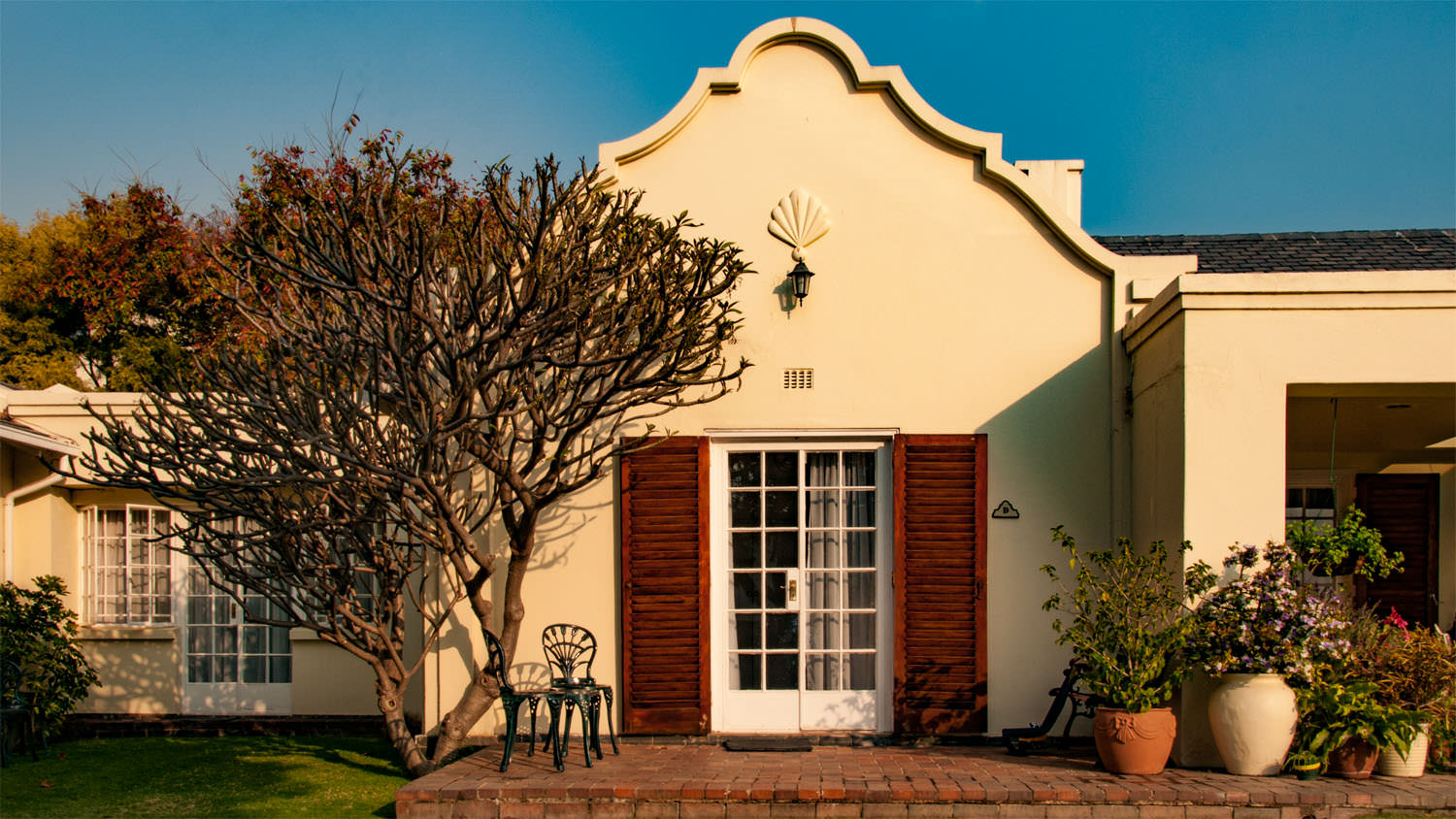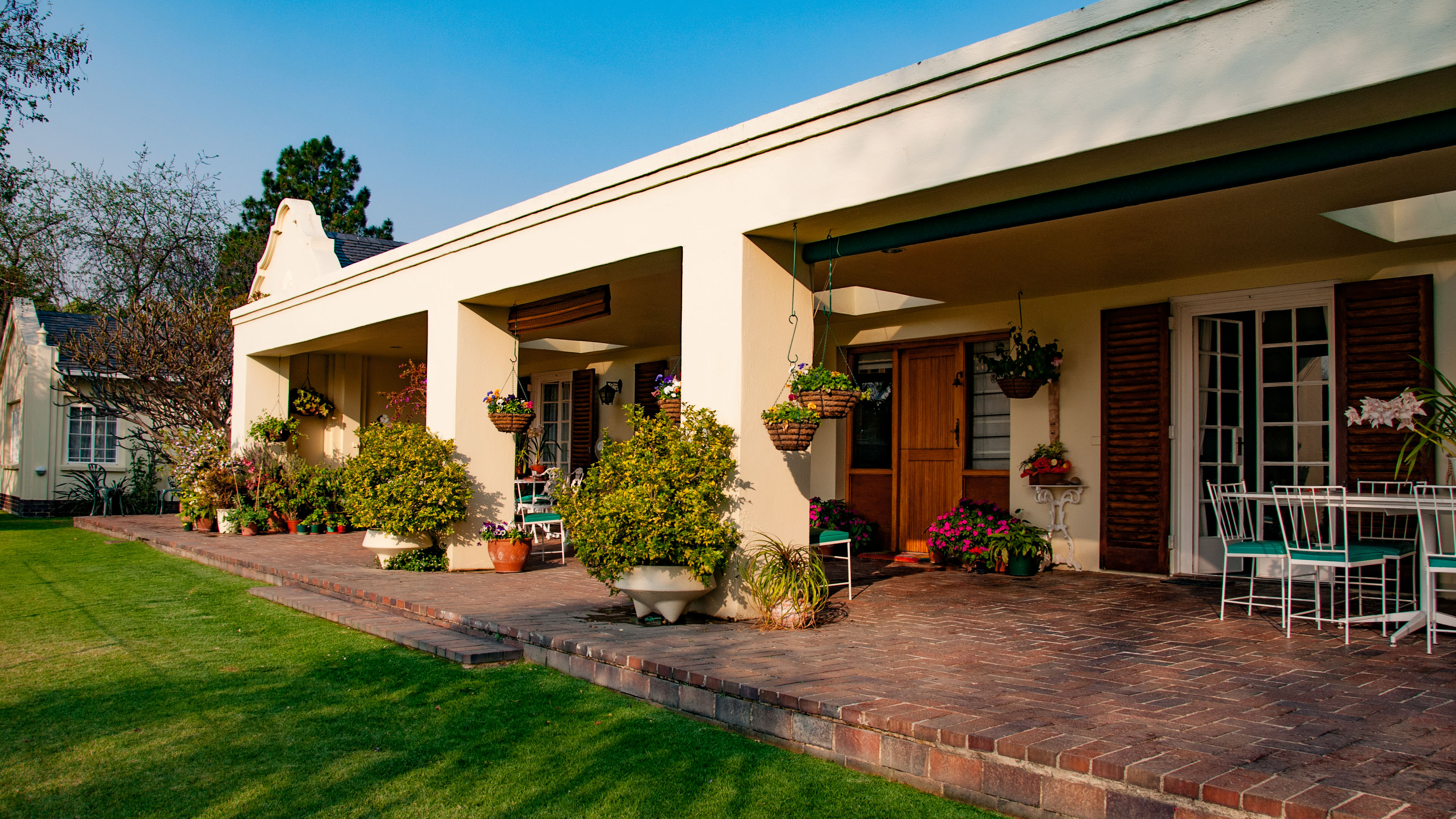 Set amongst lush quiet tranquil gardens, Cape Elegance is a premier Bed and Breakfast in Sandton. This beautiful old Cape Dutch house is one of the original farmhouses from the time of Bryanston’s inception. Like a lost splinter of the Cape Winelands this beautiful and historic building still carries the majestic tranquility of an earlier era.